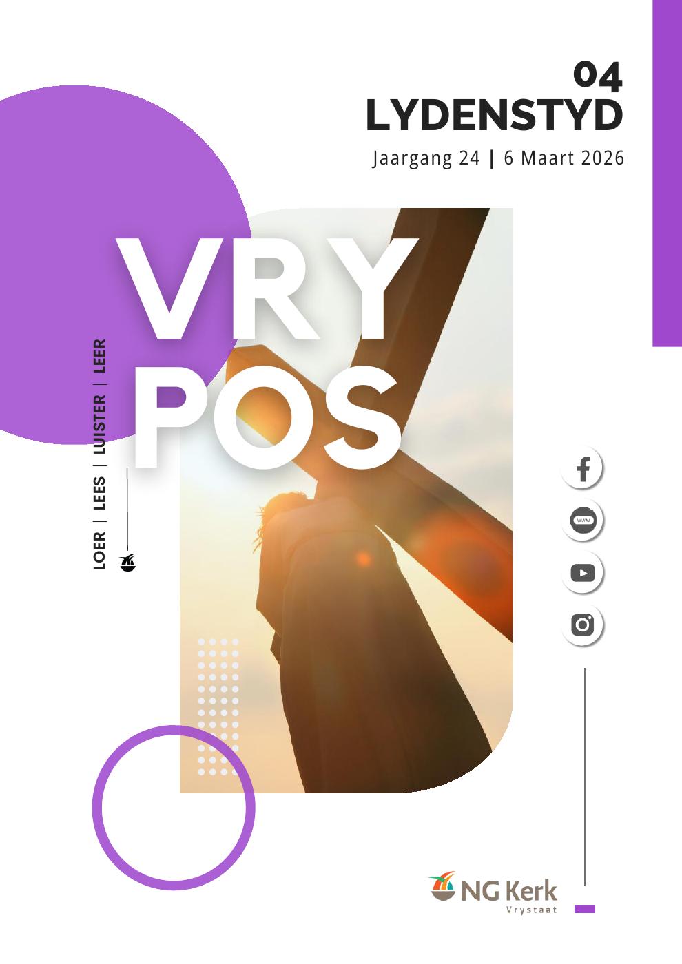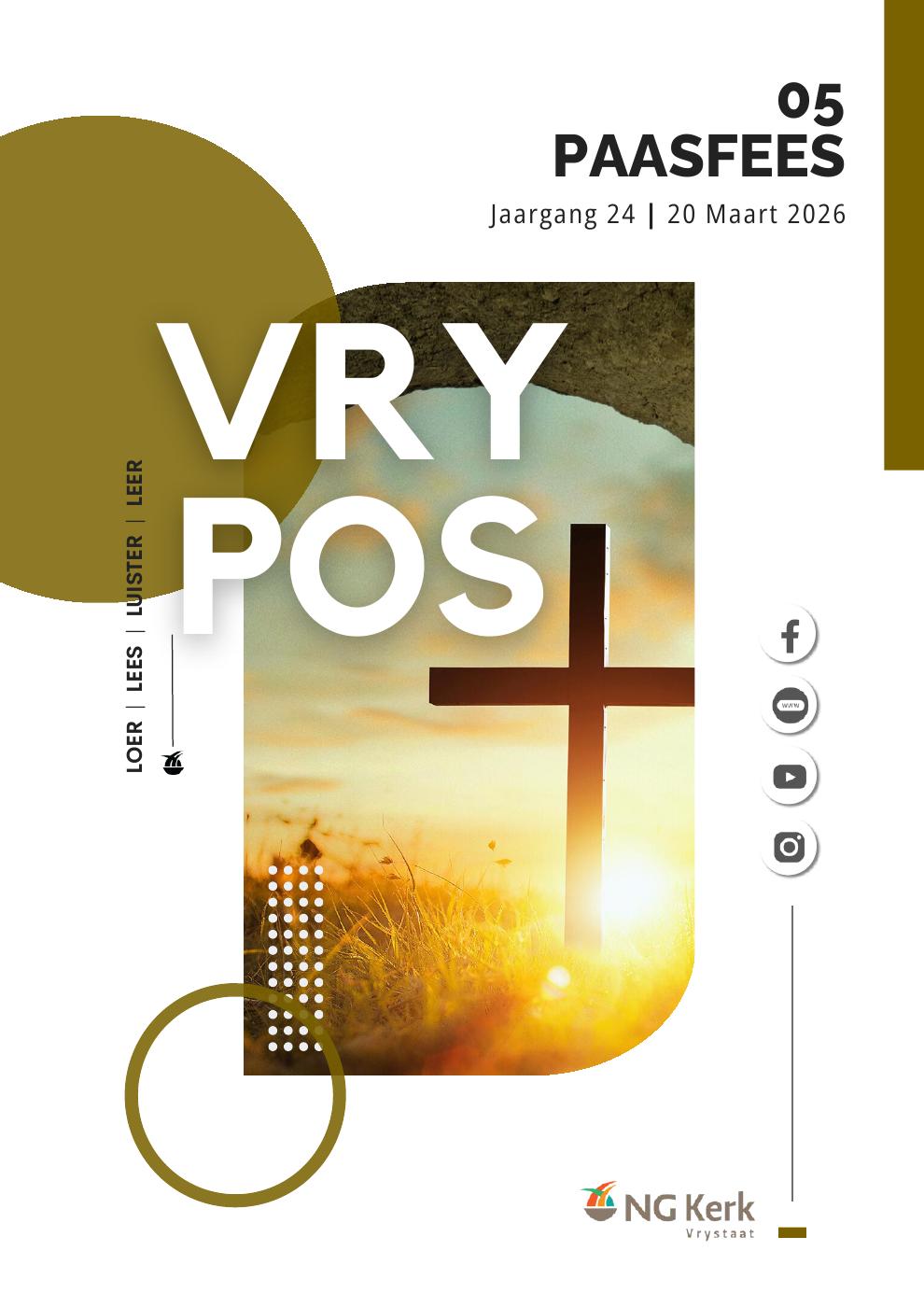 Die NG Kerk in die Vrystaat bestaan al vir die afgelope 160 jaar. Baie welkom by die amptelike webblad! Reis gerus saam met ons. Jy sal inligting van die hele streek hier vind, omdat daar in elke dorp en stad ‘n gemeente is wat op watter manier ookal, die leuse dien: