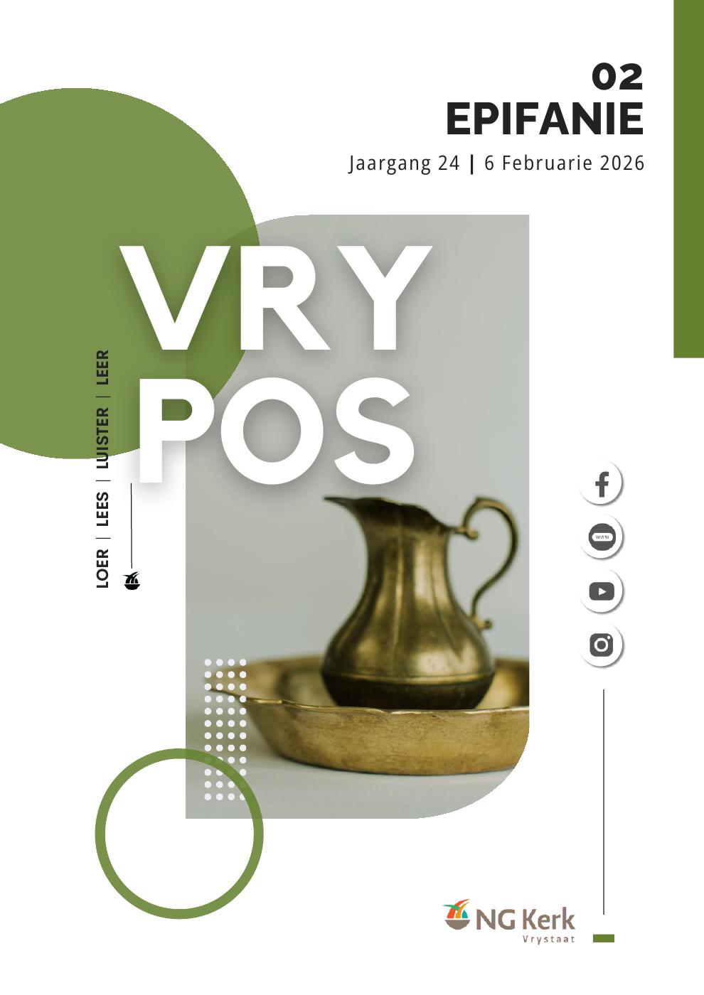 Die NG Kerk in die Vrystaat bestaan al vir die afgelope 160 jaar. Baie welkom by die amptelike webblad! Reis gerus saam met ons. Jy sal inligting van die hele streek hier vind, omdat daar in elke dorp en stad ‘n gemeente is wat op watter manier ookal, die leuse dien: