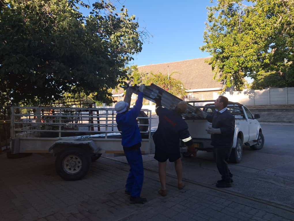 Al die materiaal moet ’n bakkievrag vol op ’n slag aangery word – 300 km ver na Tsumkwe en 200 km ver na Mangetti Duin. Dit is ’n frustrerende en duur proses om vier keer in een week hierdie distansies af te lê, net om die boumateriaal en -toerusting op die plek te kry sodat jy kan begin bou.