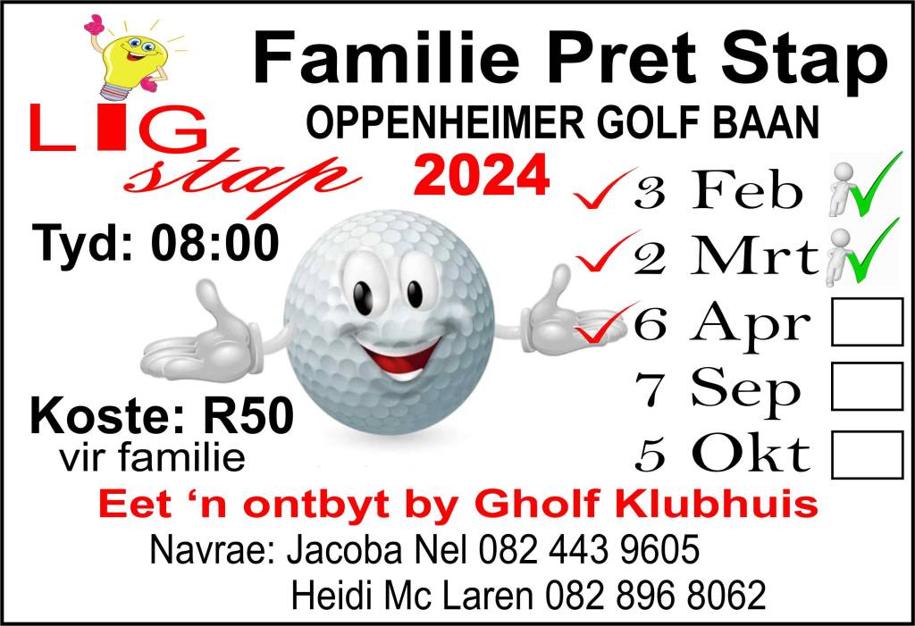 Inskrywings: Gholfdag is oop. Kontak Oppenheimer Gholfbaan 057 353 2131